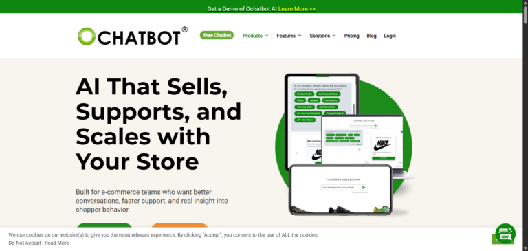 Ochatbot is an AI-powered ecommerce chatbot that automates customer support, order tracking, and abandoned cart recovery. Read our in-depth review, features, pricing, pros & cons, and alternatives.